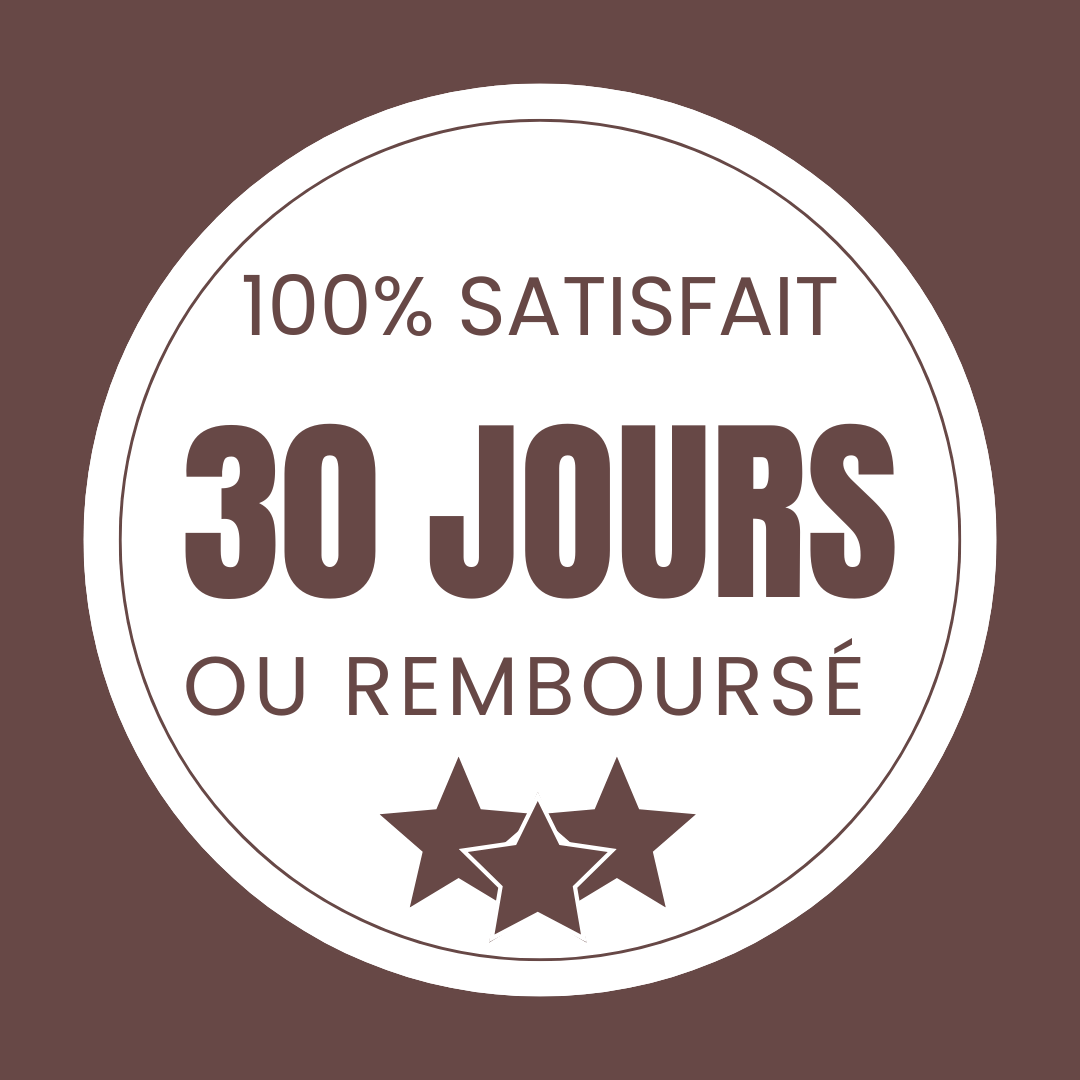 C’est pourquoi vous bénéficiez d’une garantie satisfait ou remboursé de 30 jours.
