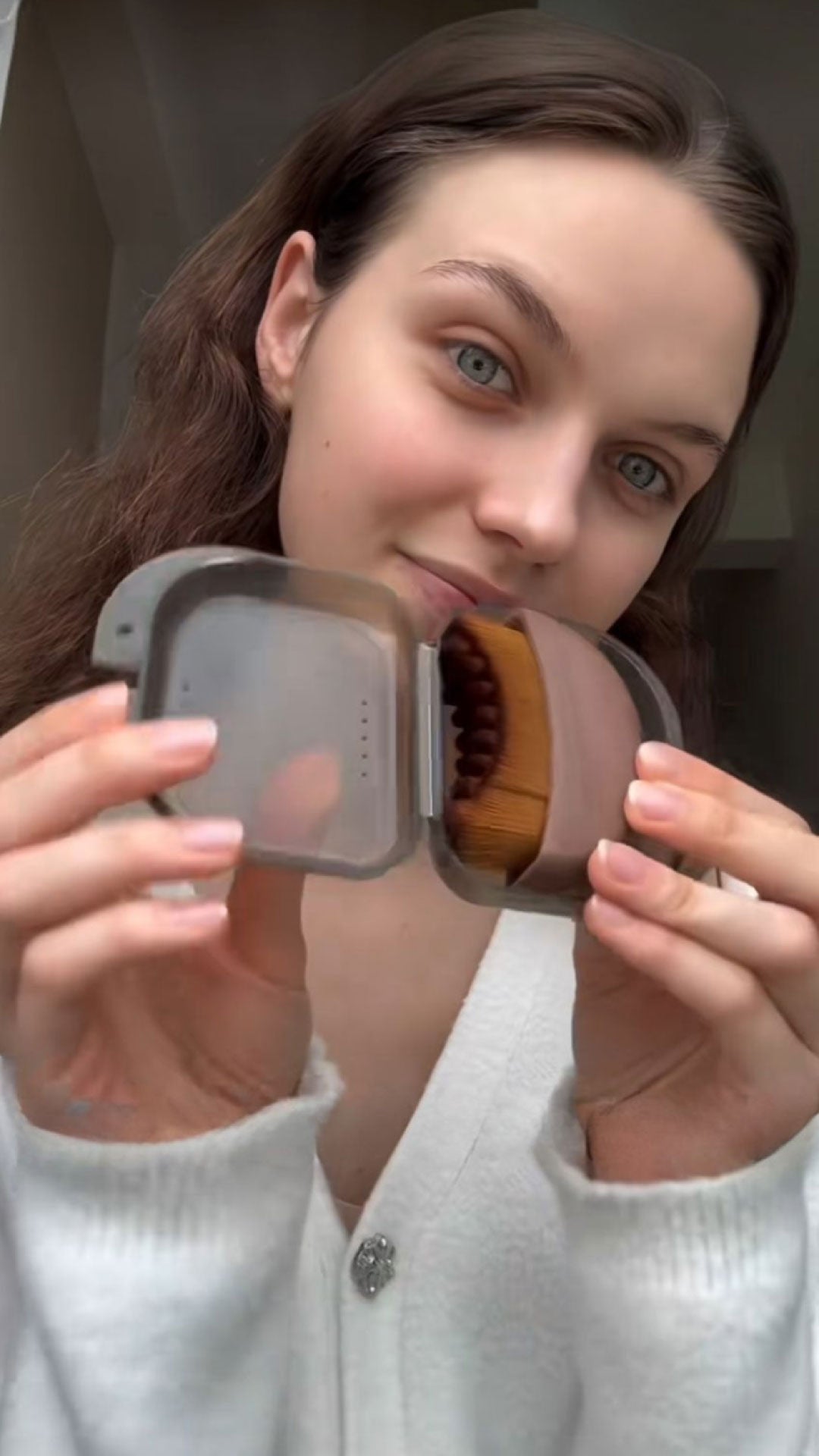 Utilisez la brosse Lymphea sur peau propre, sèche ou légèrement huilée. Réalisez des mouvements doux, toujours en remontant, en suivant les lignes naturelles de votre visage : du menton vers les tempes, du nez vers les oreilles, du cou vers la mâchoire.